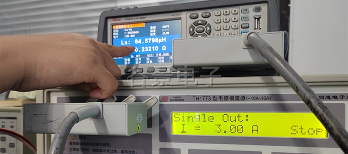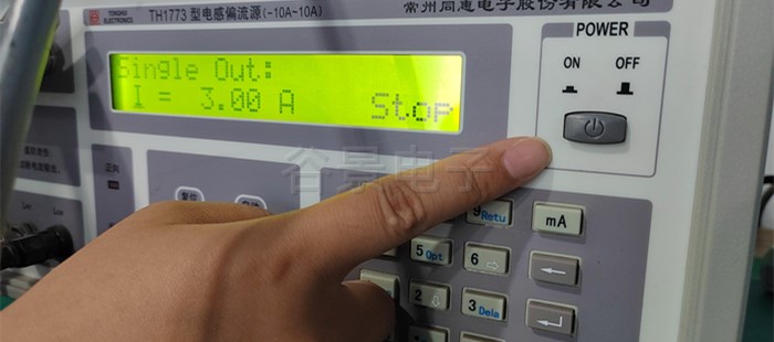 4、按測試儀器上的紅色啟動按鈕,開始加載電流,此時能看到感值隨著電流的變化在變化,這個時候要做好相應的數據記錄;